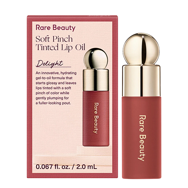 Rare Beauty Mini Soft Pinch Tinted Lip Oil 2ml #Delight ลิปออยล์โทนน้ำตาลอมชมพู ทำให้ปากชุ่มชื้น ดูเรียบเนียน